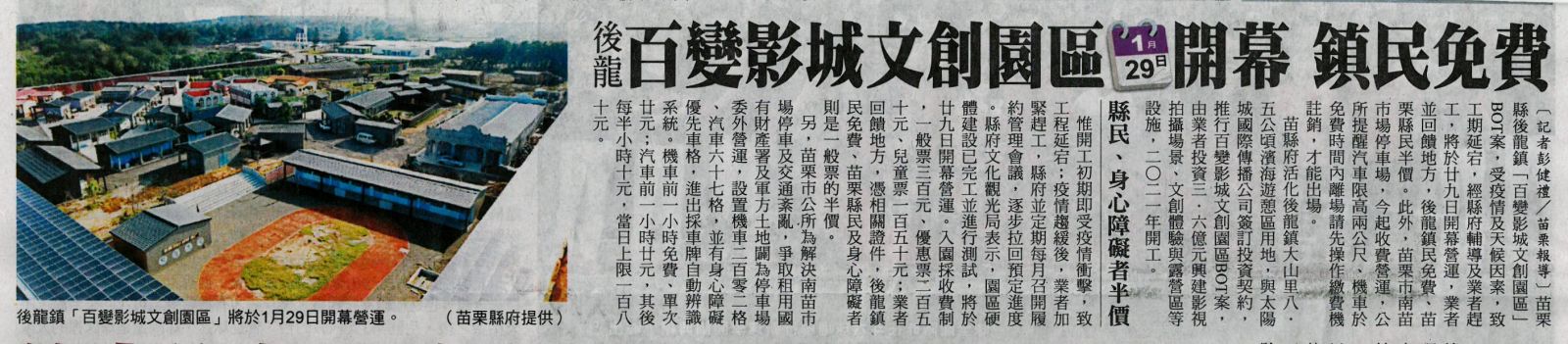 後龍百變影城文創園區1/29開幕 鎮民免費